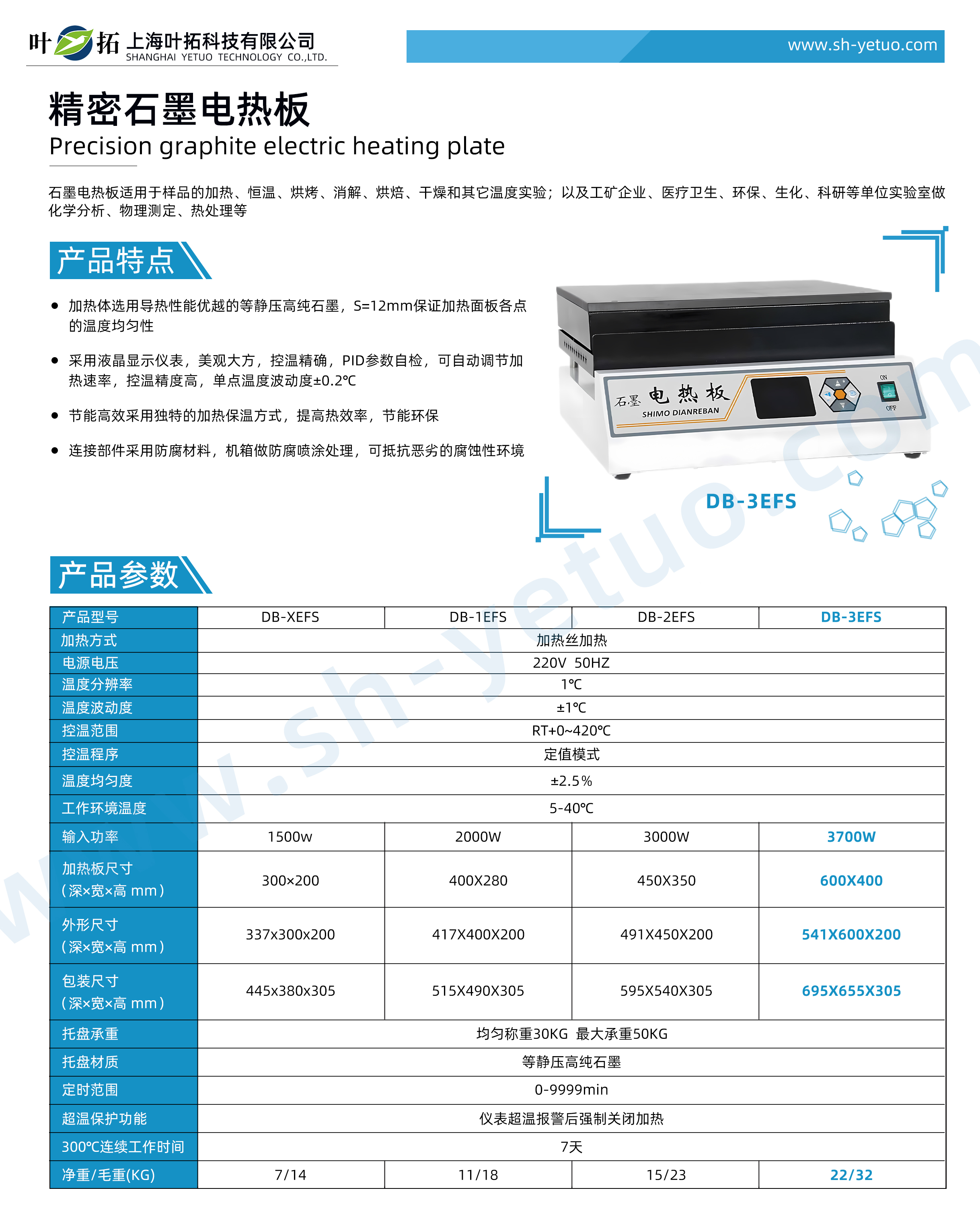 Characteristics of Ye Tuo DB-3EFS Precision Graphite Electric Heating Plate Products