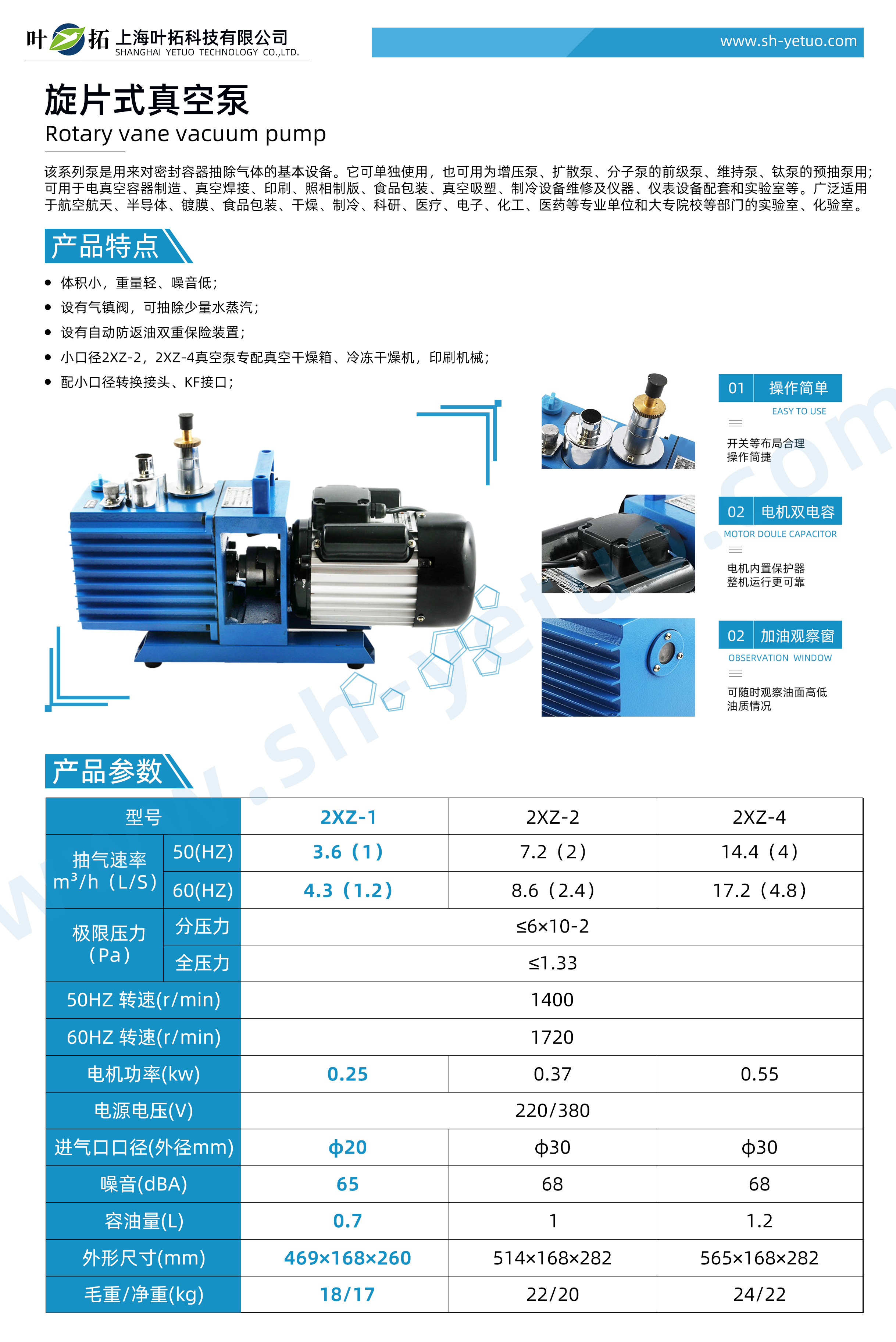 葉拓 2XZ-1 國產(chǎn)油旋片式真空泵詳細參數(shù)