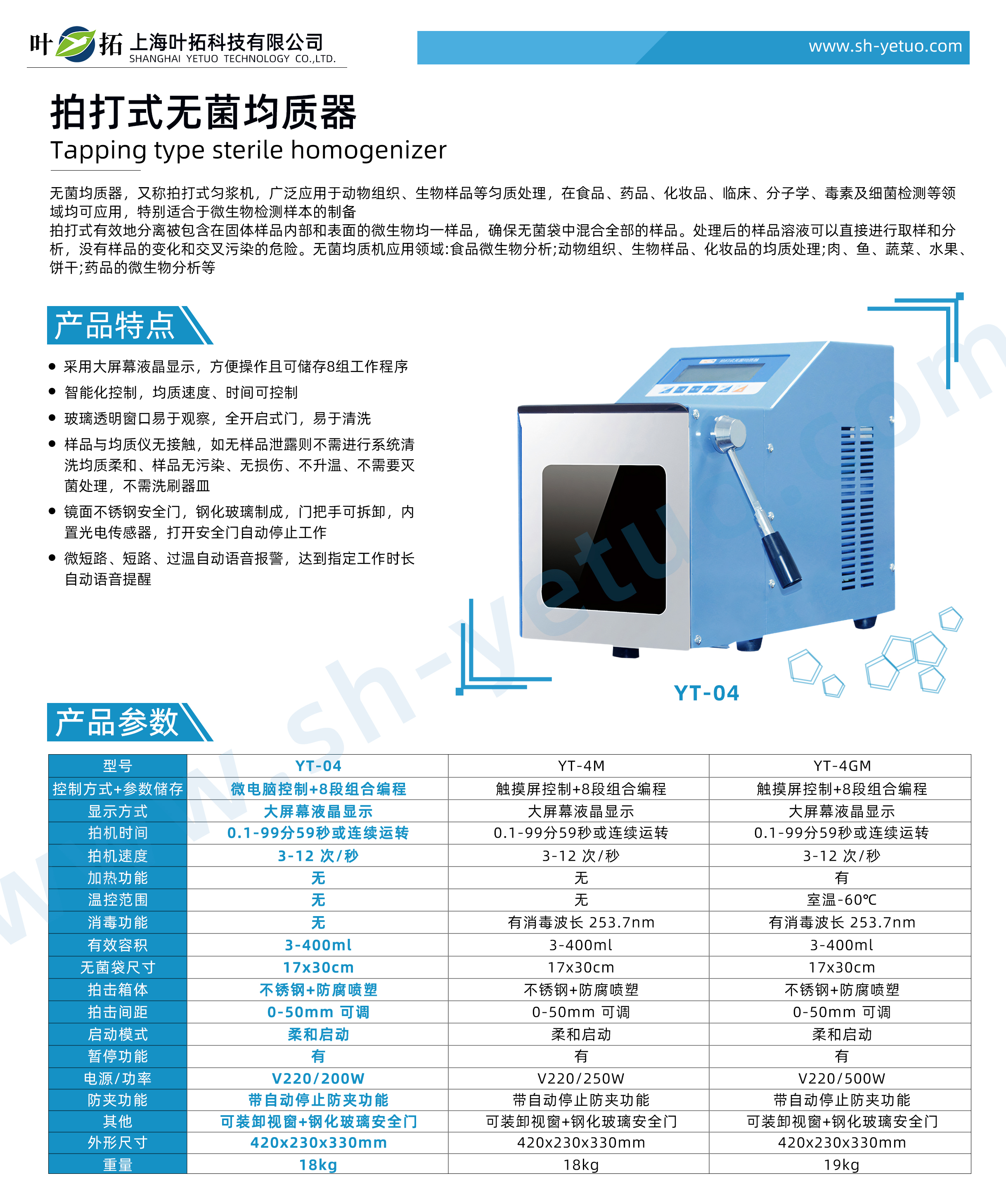 葉拓 YT-04 拍打式無(wú)菌均質(zhì)器產(chǎn)品特點(diǎn)