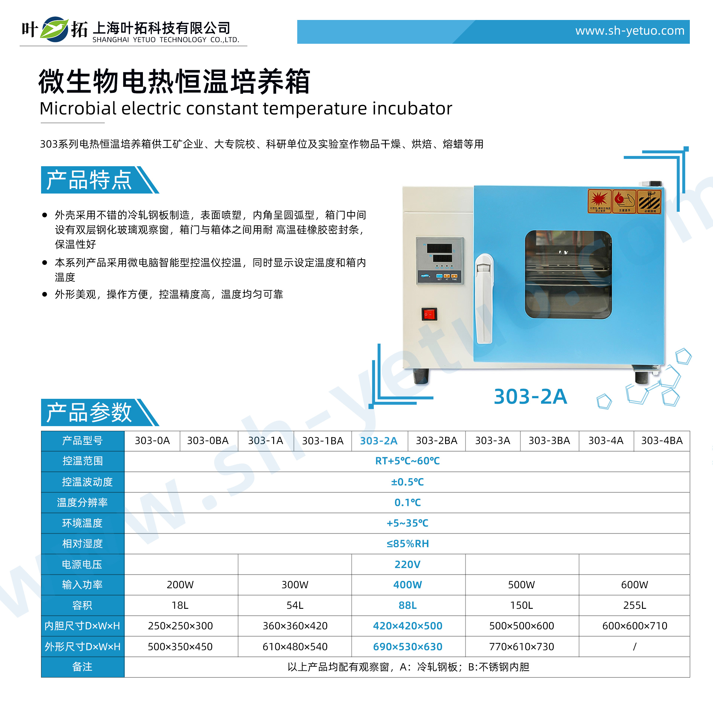 葉拓 303-2A 微生物培養(yǎng)箱詳細(xì)參數(shù)