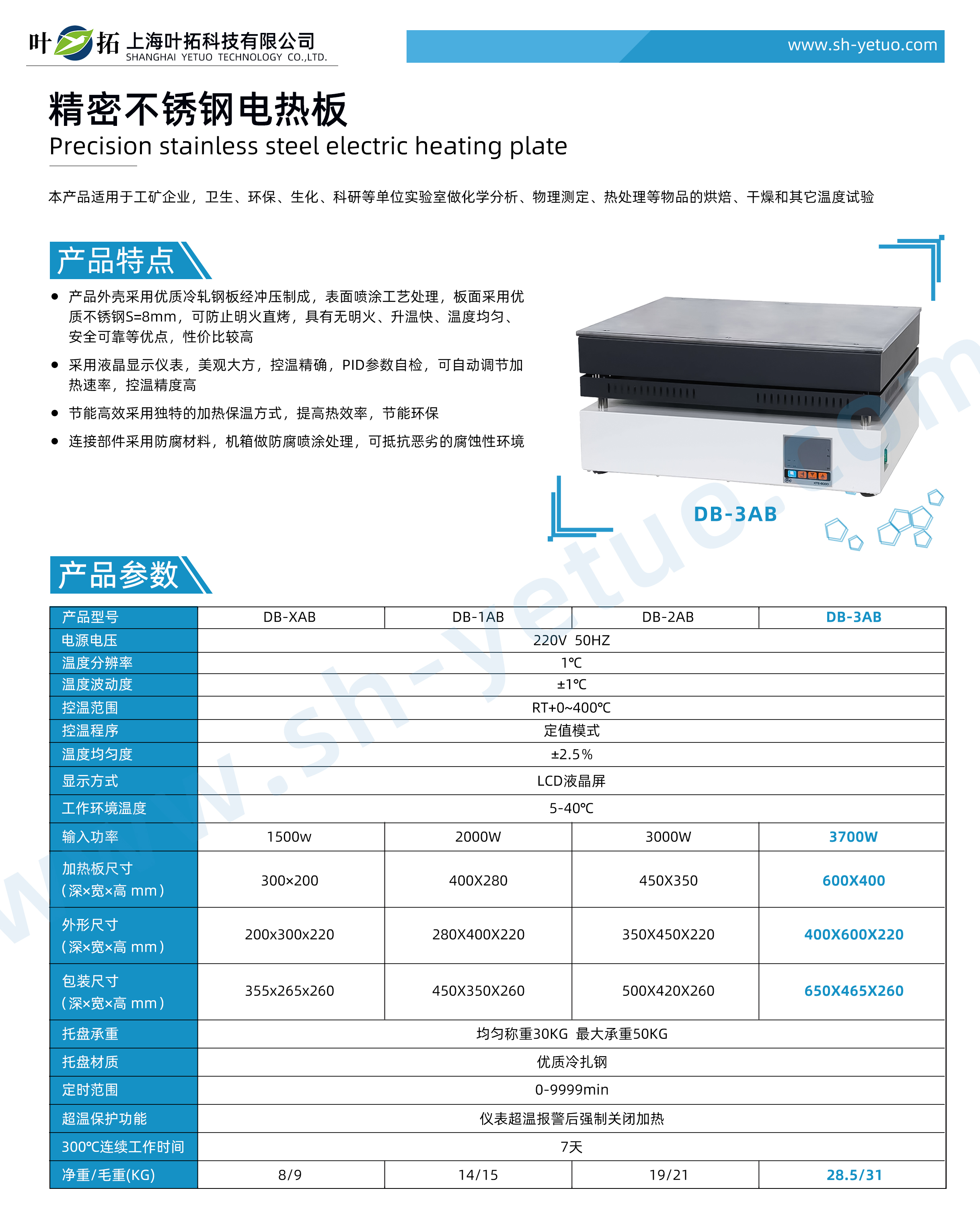 葉拓 DB-3AB 精密不銹鋼電熱板詳細參數