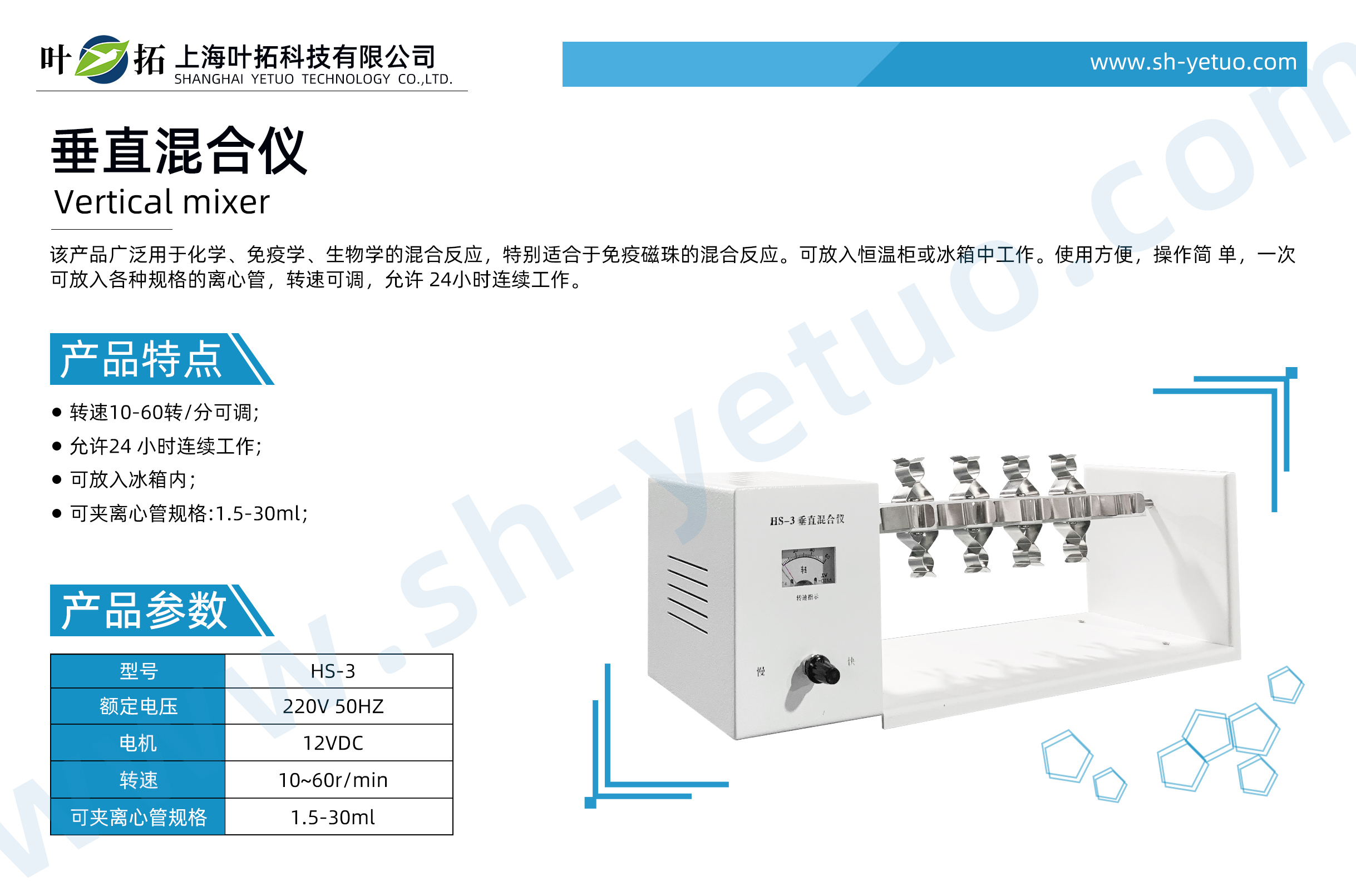 葉拓 HS-3 垂直混合儀產(chǎn)品特點